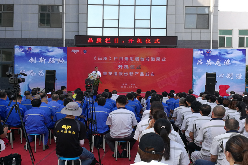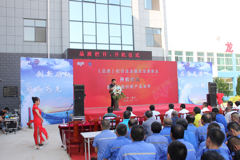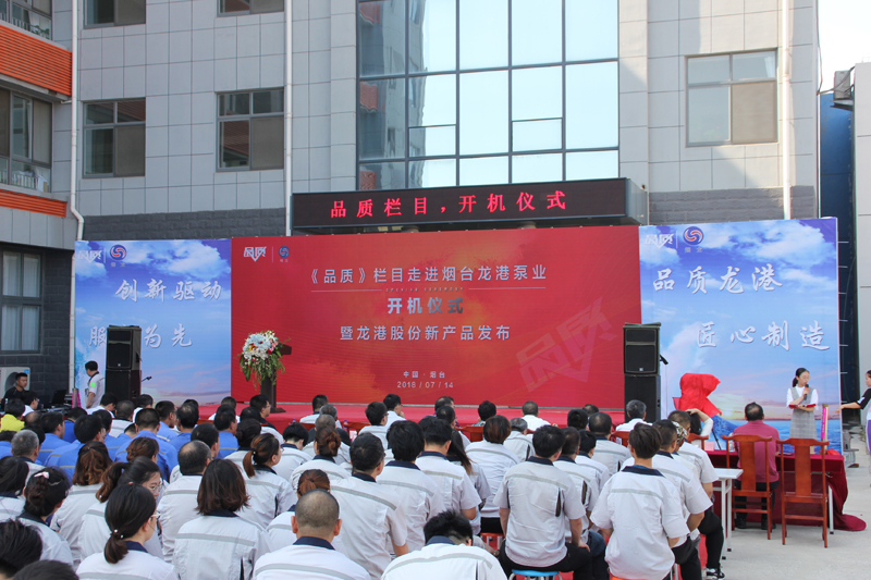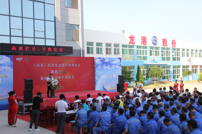 7月14日,《品質》欄目走進煙臺龍港泵業股份有限公司開機儀式暨龍港股份新產品發布儀式在龍港股份隆重舉行。煙臺高新區工委副書記劉來英,《品質》欄目執行制片人劉斐,高新區直有關部門負責人,國內石化領域部分專家學者、高新區企業家協會企業家代表等出席儀式。