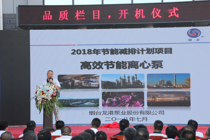 董事長陳培倫首先發表了歡迎致辭,表示很榮幸此次被《品質》欄目選為拍攝題材,入選《品質》欄目是對公司長期以來注重品質的最好褒獎。一直以來,品質是龍港人的使命!十余年專注耐腐蝕泵、化工流程泵及配件的研發、生產、銷售與服務,龍港人始終以質量求生存、以創新為驅動、以服務為宗旨,專做品質,專出精品,努力打造“煙龍”品牌從“山東省著名商標”到全國乃至世界知名品牌。公司堅持走自主研發道路,最新BB系列高端離心泵已經正式下線,經檢驗各項性能指標達到國際先進水平。龍港人會繼續努力用創新踐行“中國制造2025”,讓國產泵成為脈動神州的力量!